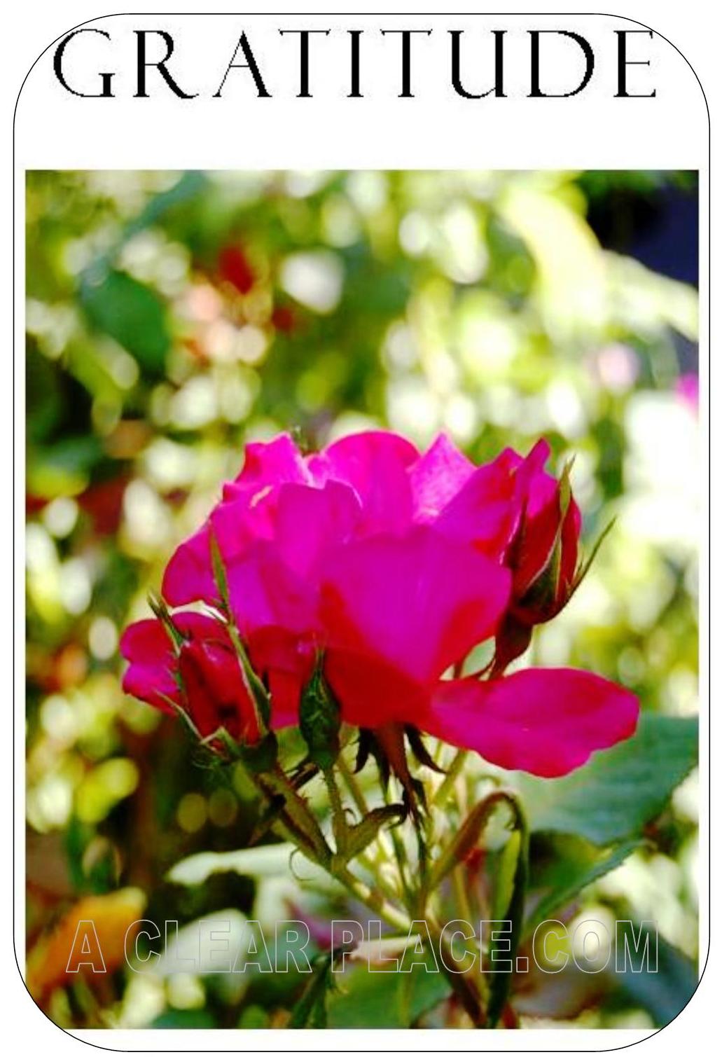 About this photo: Flowers vibrate at a high frequency, especially roses. This spray rose beauty greeted me in my backyard one afternoon. The fragrance called to me even before I saw the blossoms. Pink and green are the colors of the heart chakra so this photo was perfect for the GRATITUDE card.