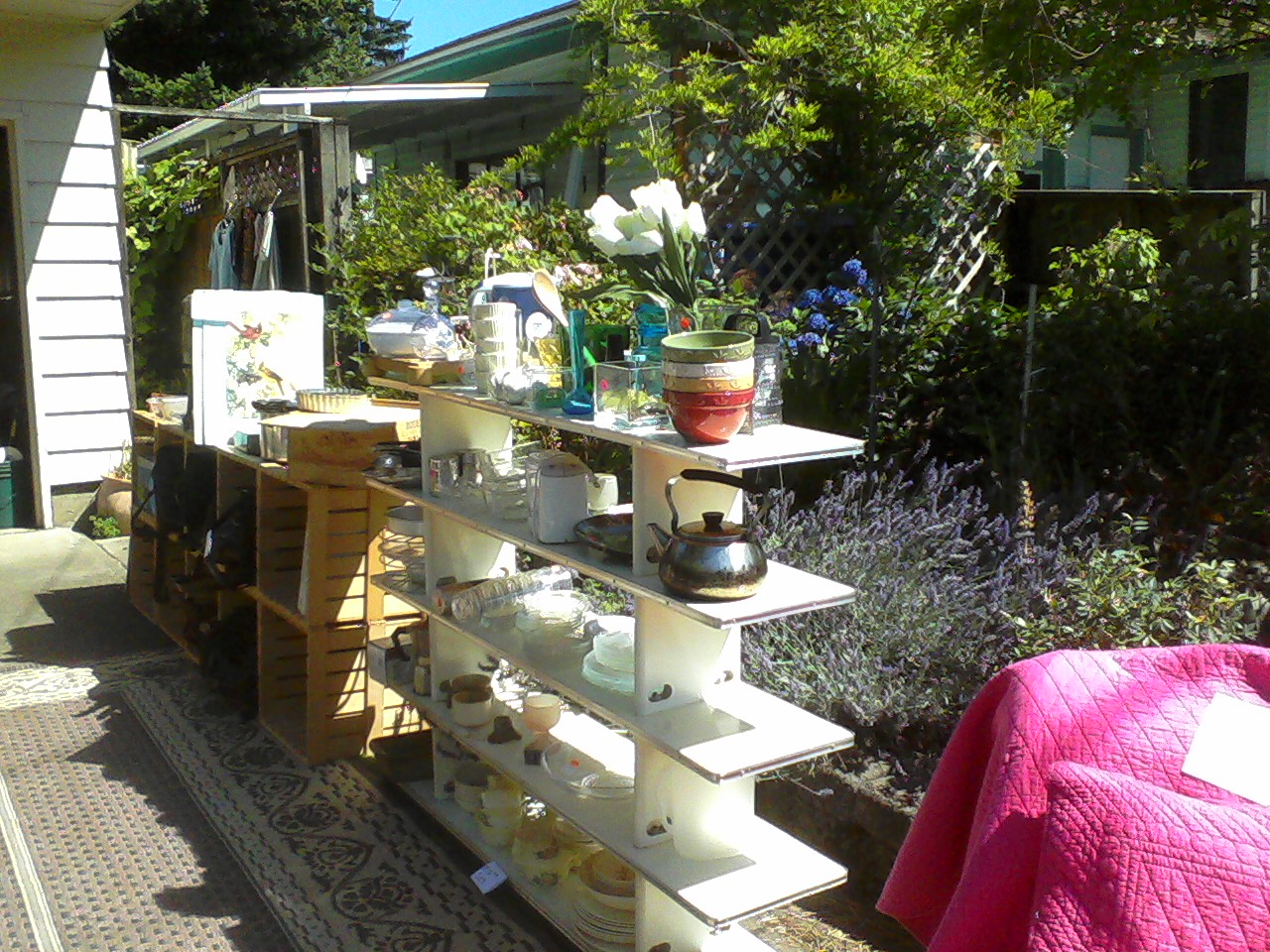 Downsizing CAN be fun … even in the heat. Zoe created this reading oasis where shoppers can enjoy garden shade while selecting books. Ripe plums from the tree provide a golden, juicy snack while you browse. Zoe did a great job arranging all the items – from furniture to ornaments – so things are easy to find and fun to look at. Shoppers are arriving on foot, on bikes and in vans. Terrific bargains and smiling faces – a perfect combo in any weather! FINAL Sale Date: Sunday July 31st, 10 – 4. 7026 NE Grand, PDX. (Near MLK & Dekum)